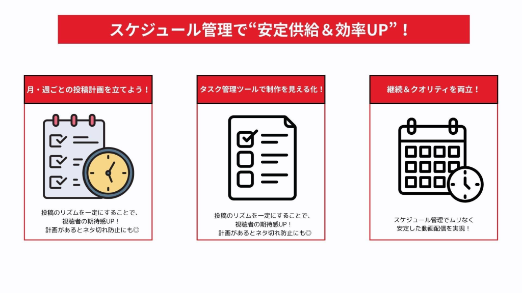 コンテンツの定期的な更新は、YouTubeチャンネルの成功に重要な要素です。決まったペースで動画を投稿することで、視聴者は新しい動画を楽しみに訪れるようになります。更新頻度は週に1回から2回がおすすめですが、企業のリソースに応じて無理のない頻度を設定しましょう。さらに、最新のトレンドや視聴者の関心事を取り入れた内容を提供することが効果的です。時事的なテーマや業界ニュースを取り上げると、多くの人の興味を引きやすくなります。このように定期的に新しいコンテンツを提供することで、YouTubeアルゴリズムにも好影響を与え、視聴者数を拡大させることができるのです。